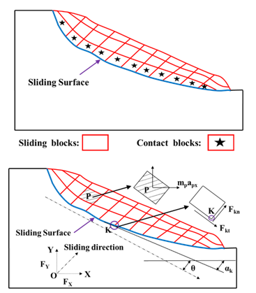 滑坡稳定性分析是岩土工程领域的经典问题,极限平衡分析思想是解决该问题的有力武器。极限平衡分析以安全系数求解为目标,假设滑动面同时达到极限状态,是典型的整体稳定性分析方法。然而,滑坡通常是从局部失稳发展至整体破坏的动力学过程,需要经历大变形、不连续体之间的接触、滑动摩擦。国际著名数学家、岩石力学家、中国科学院大学教授石根华先生提出的非连续变形分析(DDA)方法是一种满足平衡方程收敛、不连续接触的开闭迭代收敛和静力计算中的最大容许位移收敛的极限平衡计算新方法,在处理的非连续、非线性、大变形、动力学问题方面具有得天独厚的优势。