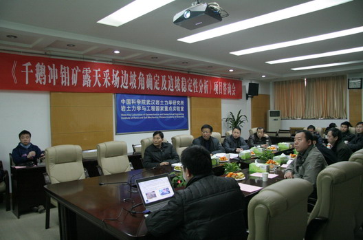 1月17日,《千鹅冲钼矿露天采场边坡角确定及边坡稳定性分析》项目咨询会在武汉岩土所召开,咨询会由科研计划处处长焦玉勇研究员主持,副所长盛谦研究员、安俊勇主任、姚海林研究员及其项目组科研人员参加了会议。