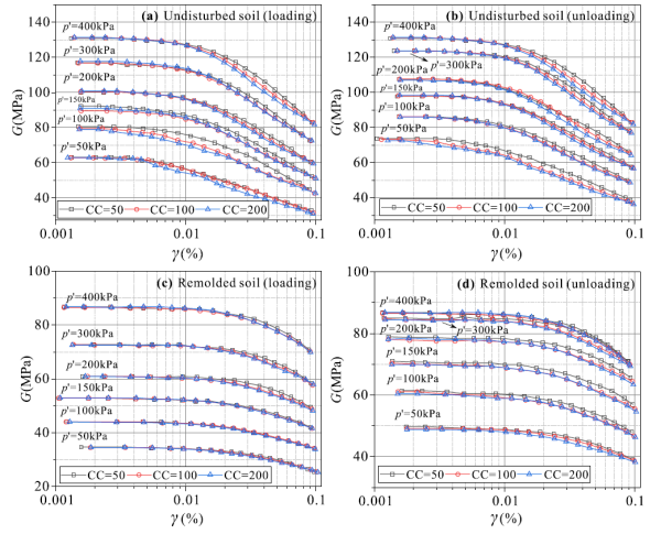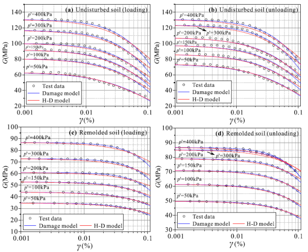 中国科学院武汉岩土力学研究所特殊土土力学组研究团队通过共振柱试验系统研究了土体结构、平均有效应力、加卸载应力路径和振动循环次数对膨胀土小应变剪切模量的影响,揭示了土体小应变剪切模量的非线性衰减规律,并提出了反映土体小应变剪切模量演化规律的统一损伤模型。同时,采用石灰对膨胀土进行改性,研究了石灰改性膨胀土小应变剪切模量的非线性衰减特性。研究发现土体小应变剪切模量的非线性衰减特性本质上可看作是土体变形导致的损伤行为,且土体小应变剪切模量的非线性衰减规律均可通过统一损伤模型进行描述。石灰能够很好地提升膨胀土的小应变剪切模量,但同时也增大了膨胀土的脆性,工程中建议采用少量的石灰对膨胀土进行处理。该研究可为小应变范围内岩土工程变形分析提供理论和实际指导。