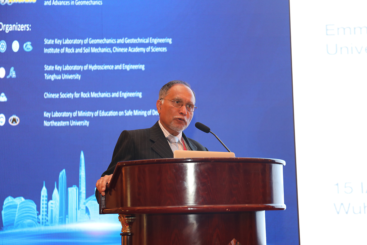 中国工程院院士、中国科学院武汉岩土力学研究所研究员葛修润应邀讲话,表示IACMAG大会又回到武汉,这是中国岩土力学与工程界,也是中国科学院武汉岩土力学研究所的历史性事件。希望此次大会为岩土力学与工程学界奉献一场精彩的科技盛会。
