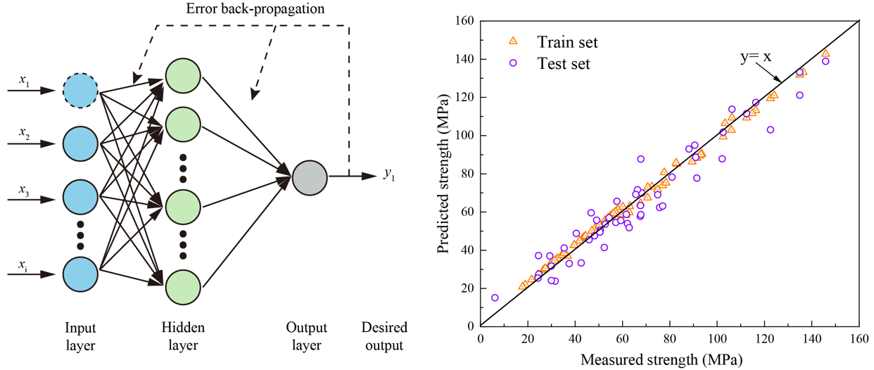为预测离散性较强的礁灰岩力学强度,将提出的孔隙张量衍生参数嵌入经典机器学习模型,如支持向量机模型、随机森林模型和误差返回的神经网络模型等,同时利用遗传算法进行超参数寻优。最终误差返回的神经网络模型在训练集和测试集中表现最佳,达到了92%的预测准确率。然而,受限于训练样本较小,模型的鲁棒性仍有待加强。