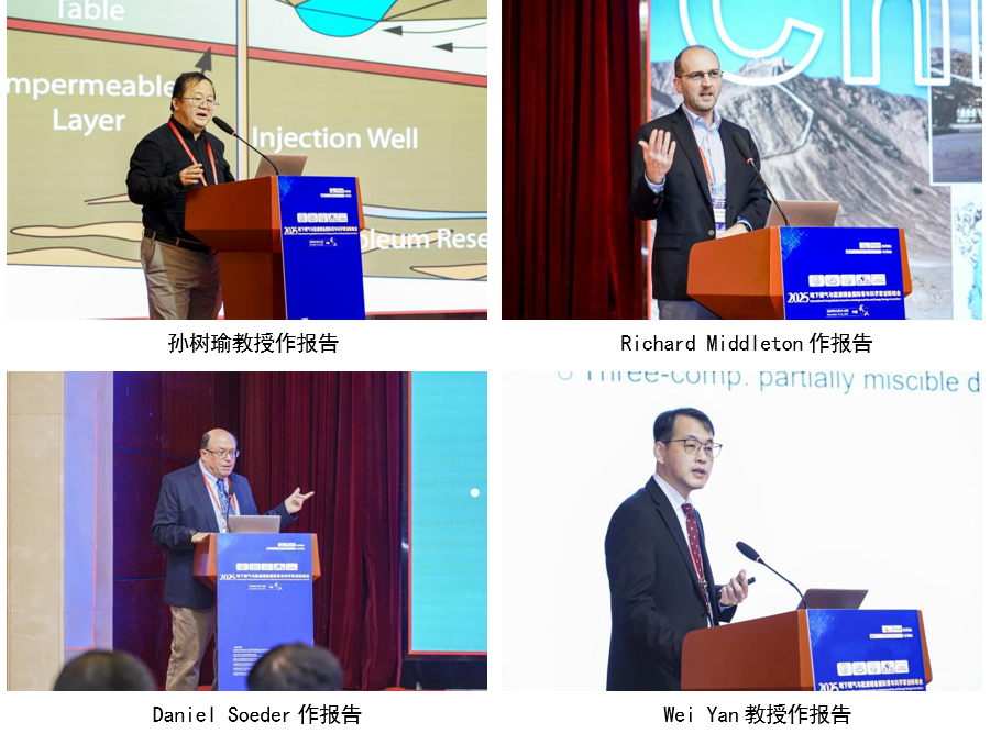 本次峰会汇聚了全球行业顶尖智慧,特邀报告环节亮点纷呈。同济大学数学科学学院院长孙树瑜教授以“地下储气应用中数字岩石物理的稳定高效数值算法”为题,介绍了深地储气领域新型前沿稳定性分析方法,为地下储气设施安全高效运行、保障能源存储与供应稳定奠定坚实的数值计算基础。美国Carbon Solutions公司首席执行官Richard Middleton作了题为“SimCCS:理解商业规模的碳捕集、运输与封存”的主题报告,为CCS项目商业规划提供了可落地的风险规避与成本优化路径,助力这一关键减排技术从试点示范加速迈向规模化商用。美国Soeder Geoscienses公司首席咨询师Daniel Soeder围绕“为清洁能源与气候变化应对服务的地下气体储存技术”展开分享,为氢气、CO2的地下封存提供科学指引,为推动地下储能技术规模化应用、构建低碳能源体系提供关键支撑。中国科学院武汉岩土力学研究所李琦研究员聚焦“中国CO2地质封存新进展”,全面展示了国内CO2地质封存领域的前沿成果,其中部分成果已广泛应用于国内各大CCUS示范项目。日本东京大学Takeshi Tsuji教授介绍了“地下气体储存与地球物理监测与数字岩石物理技术进展”, 全面深度地介绍了地球物理技术在碳储领域的创新应用,为地下气体储存的降本增效与风险防控提供了经验与参考。丹麦科技大学Wei Yan教授带来了“含多种杂质CO2在咸水层储存中的解析解研究”最新成果,为含杂质CCUS项目的风险预判、方案优化提供了高效精准的理论计算工具。