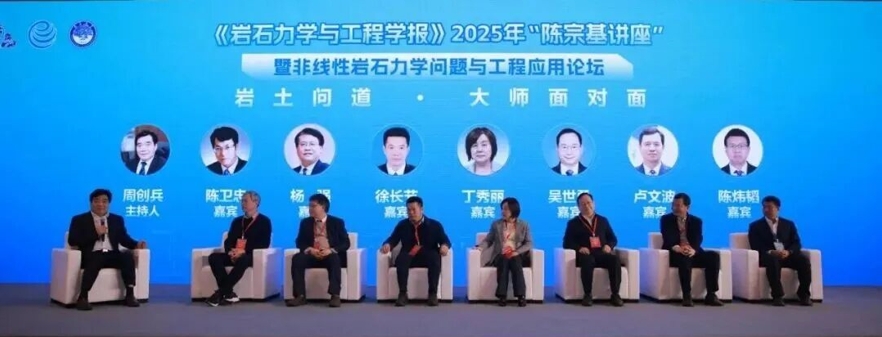 大会特设“岩土问道·大师面对面”研讨环节,由周创兵院士主持,陈卫忠、杨强、徐长节、丁秀丽、吴世勇、卢文波、陈炜韬等七位来自高校、科研院所与企业的专家参与,聚焦岩土工程中的非线性问题,围绕爆破开挖、深埋隧洞建设、水工岩土工程等实践难点展开深入交流,共同探讨以学科交叉和技术创新推动理论突破与工程应用的未来发展路径。