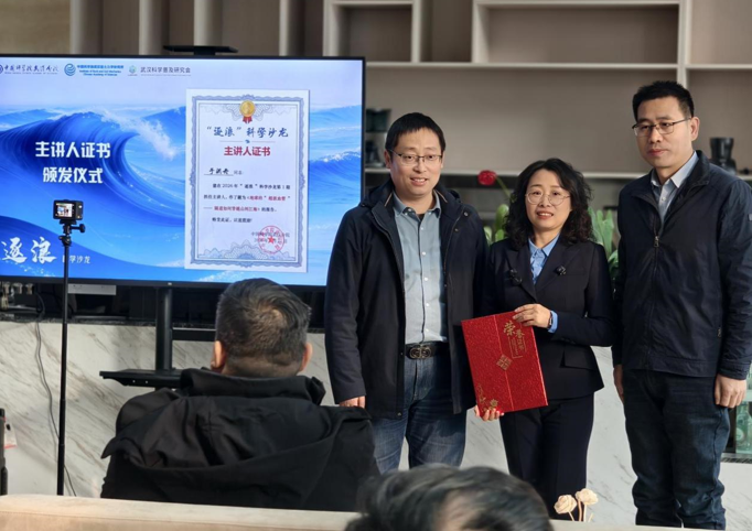 本次活动特邀武汉科学家科普团团员、武汉岩土所于洪丹研究员带来《地球的“超级血管”—— 隧道如何穿越山河江海》专题报告。于洪丹研究员以通俗易懂的语言拆解隧道工程背后的岩土力学奥秘,带领听众开启生动的“地心穿越”之旅,充分展现了我所科研成果科普化的实力与成效。互动交流环节中,不同领域科技工作者围绕隧道工程、地下空间开发等议题踊跃提问,现场探讨氛围热烈深入。报告结束后,施锡林、王亮伟共同为于洪丹颁发了“逐浪”科学沙龙主讲人证书。