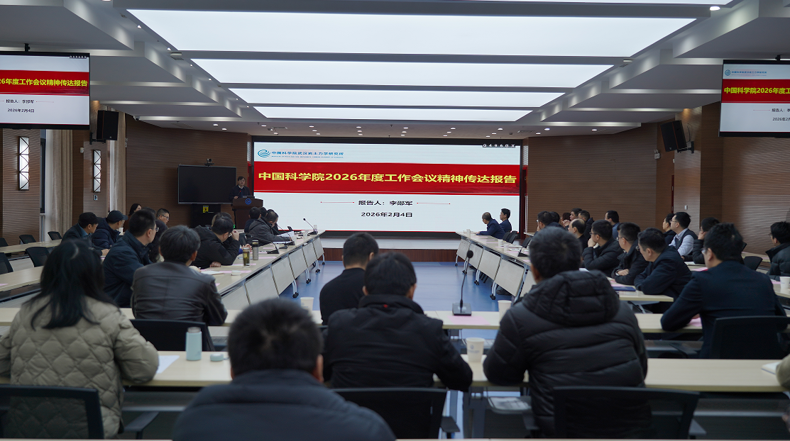 2026年2月4日上午,中国科学院武汉岩土力学研究所(以下简称“武汉岩土所”)召开专题会议,传达学习中国科学院2026年度工作会议精神,部署研究所贯彻落实相关工作。武汉岩土所党委副书记(主持工作)、副所长周辉主持会议。杨春和院士、所领导班子成员、科研骨干、职能部门负责人及青年代表等80余人参会。