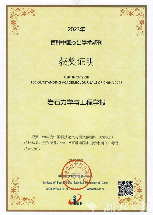 3月27日,第六届中国出版政府奖表彰座谈会在京举行,湖北省领军期刊《岩石力学与工程学报》(以下简称《学报》)荣获期刊奖,摘得我国新闻出版领域国家级最高荣誉。